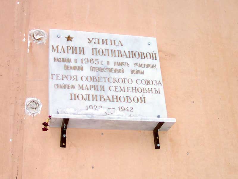 Эта улица названа в 1965г. именем снайпера, Героя Советского Союза Марии Семеновны Поливановой, которая жила в этом районе.