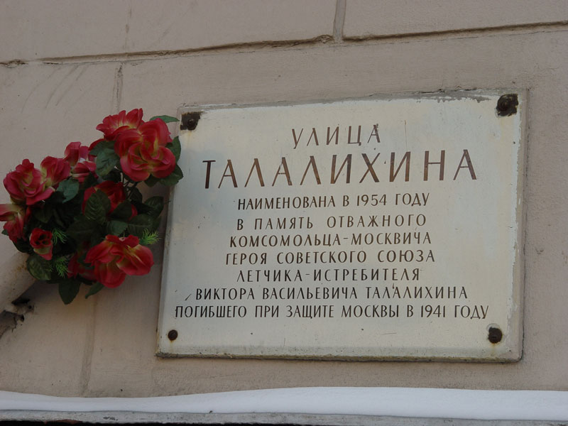 Эта улица названа в честь заместителя командира эскадрильи 177-го истребительного авиационного полка, младшего лейтенанта, Виктора Васильевича Талалихина.