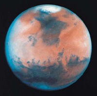 Уникальное исследование дало основания утверждать, что некоторые из земных микроорганизмов способны выживать в марсианских условиях. Средняя температура поверхности Марса подвержена колебаниям и достигает на экваторе днем +10 -15°С и ночью от -70 до -80°С. Во время полярной ночи температура снижается до -120°С. Давление у поверхности Марса составляет в среднем 7 мм рт. ст., снижаясь в некоторых районах планеты до 4-5 мм рт. столба Атмосфера красной планеты насыщена углекислым газом и аргоном, обнаружены также следы кислорода, водяных паров и других газообразных и летучих соединений.